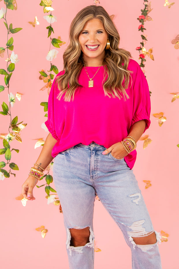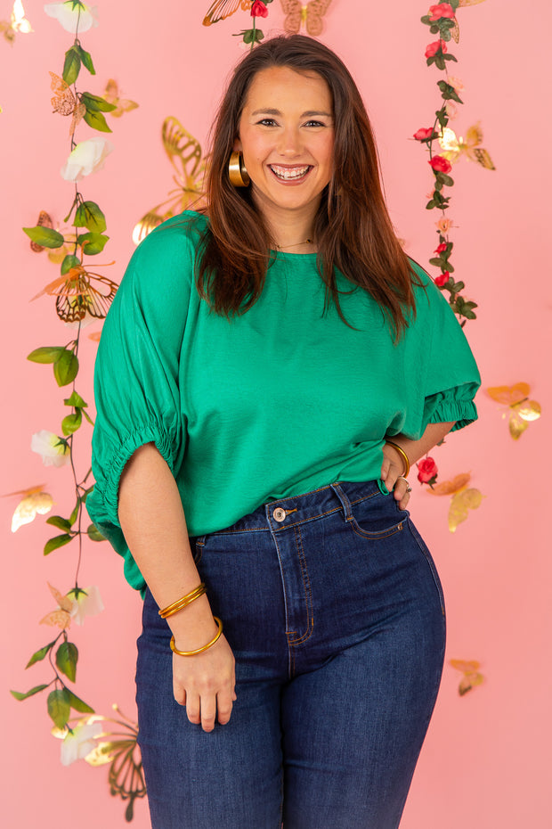 Featuring a smooth and sleek rounded neckline, the State Of Mind Top is crafted from a luxurious silky material. Its elastic banded short sleeves provide an effortless and comfortable fit. Elevate your wardrobe with this versatile and stylish top.
