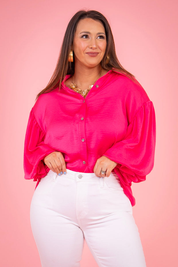 Enhance your wardrobe with our Hold That Thought Top. This button-down front and top collar design, along with long sleeves, adds a touch of sophistication to any outfit. Made with silky material, it provides comfort and style for any occasion.