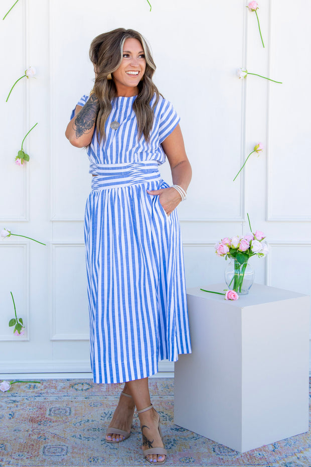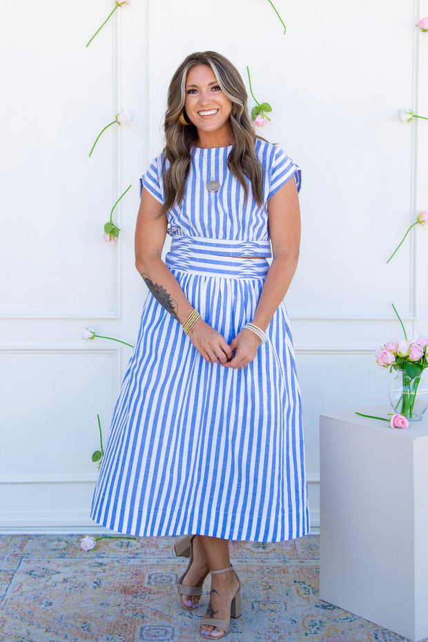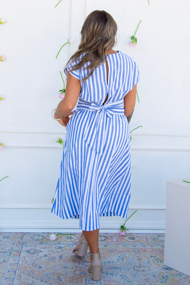 Introducing our Summer Vacation Top, expertly designed with a cropped silhouette and sleeveless style for a cool and comfortable fit. The striped print adds a touch of fun, while the tie back adds a hint of playfulness to your summer wardrobe. Get ready to turn heads with this must-have top!