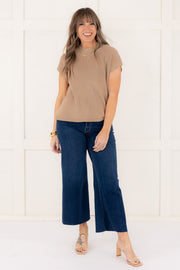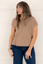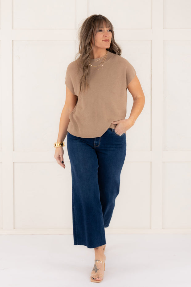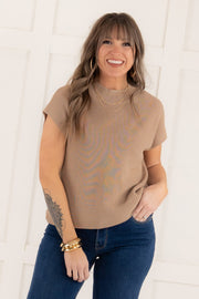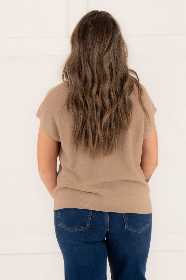 Stay cool and stylish with our Easy To Please Top in Coco. Its sleeveless silhouette and rounded neckline provide a comfortable fit, while the knitted material adds a touch of texture. Perfect for any occasion, this top will quickly become a staple in your wardrobe.