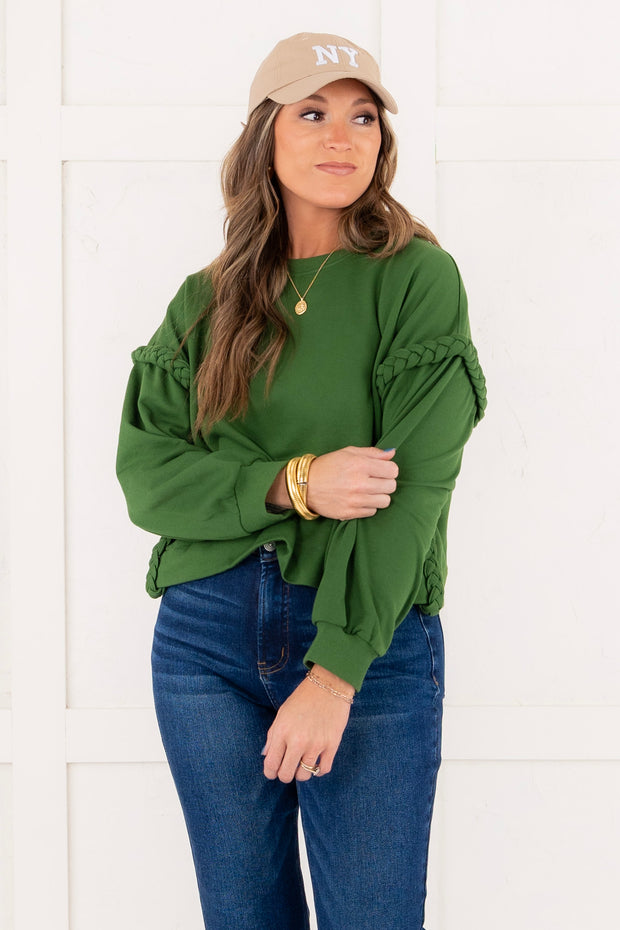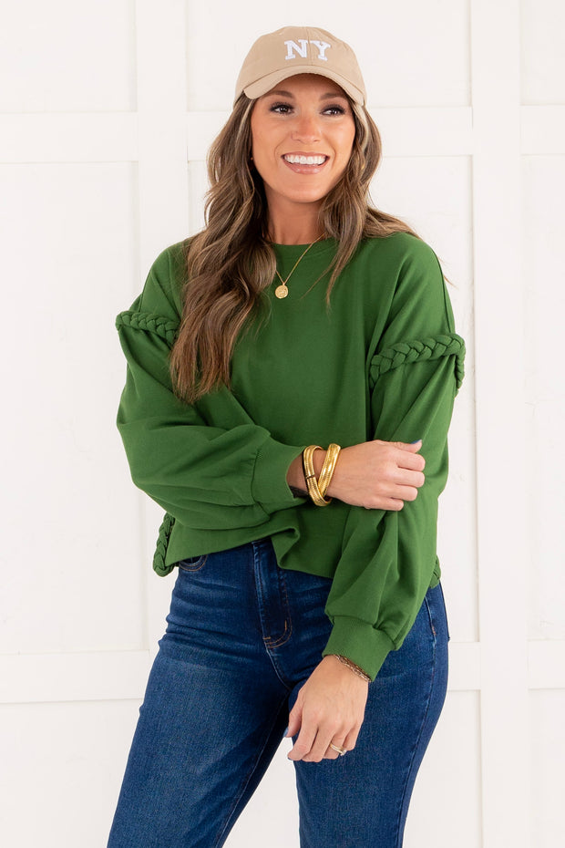 The Take You There Top features a rounded neckline, long sleeves, and braided detailing for a stylish touch. With a waist length design, it offers a flattering fit that will take you anywhere in style. Elevate your wardrobe with this versatile and chic top.