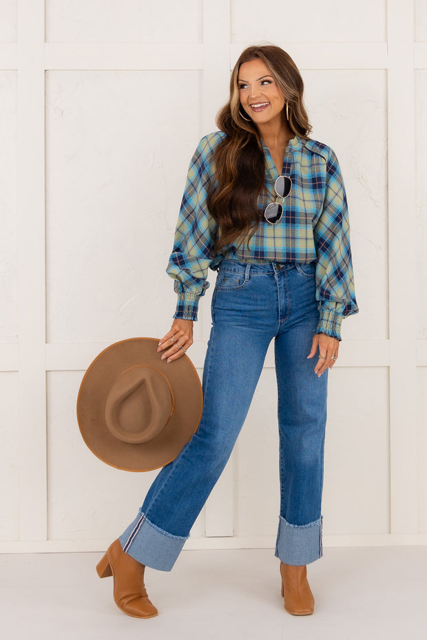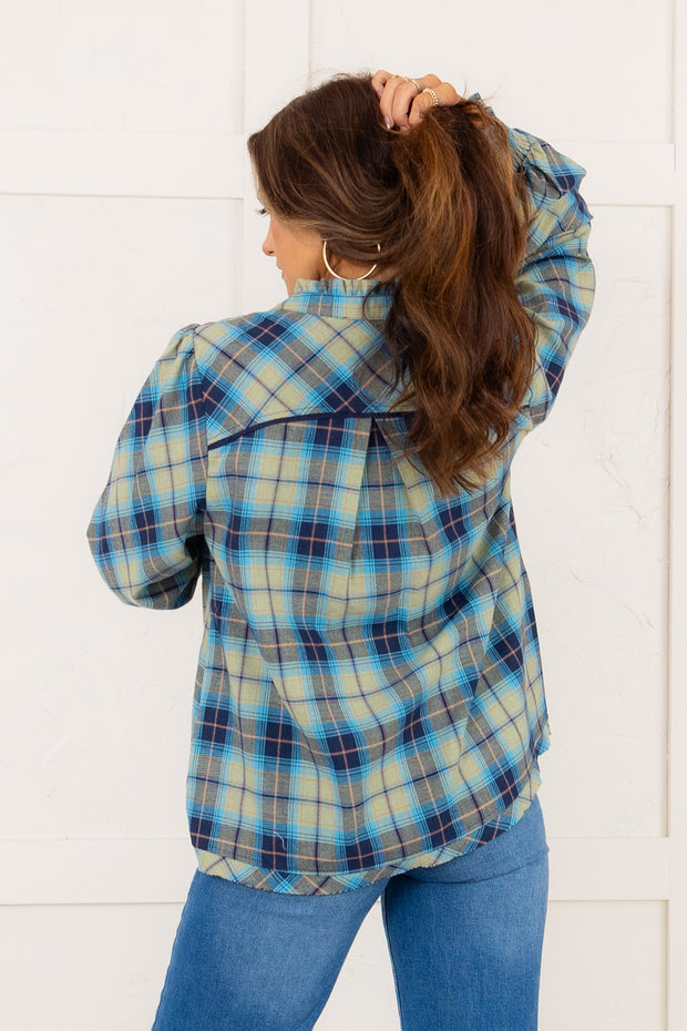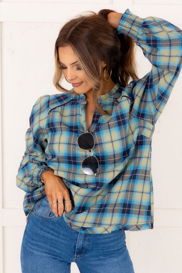 As an industry expert, our Know You Better Top offers a v-neckline, plaid print, long sleeves, and a ruffled collar. With its versatile design and comfortable fit, this top is perfect for both casual and formal occasions. Upgrade your wardrobe with this stylish and timeless piece.