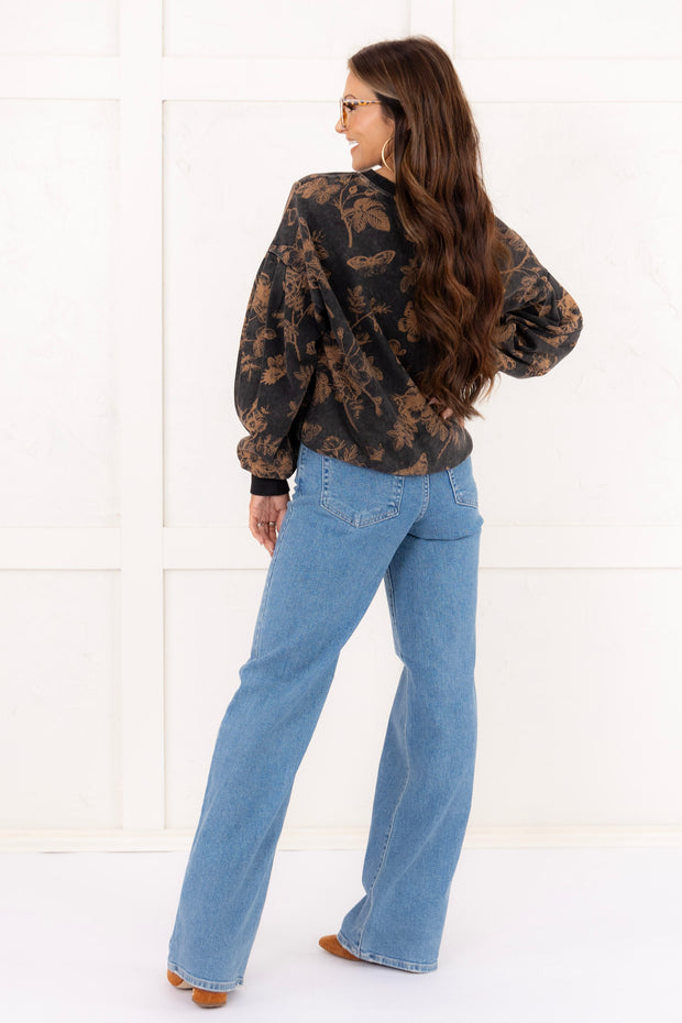 Expertly designed with a rounded neckline and long sleeves, the Just For Me Top also features an eye-catching abstract print and a banded bottom for a flattering fit. Made with high-quality materials, this top is both stylish and comfortable, perfect for any occasion.