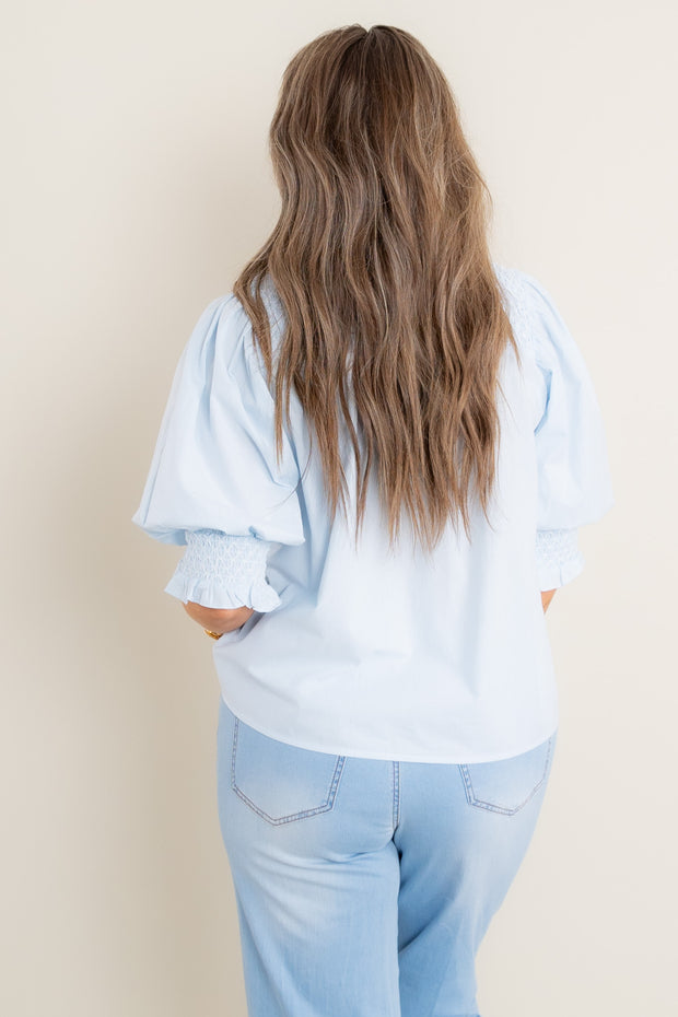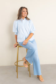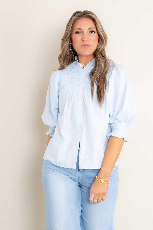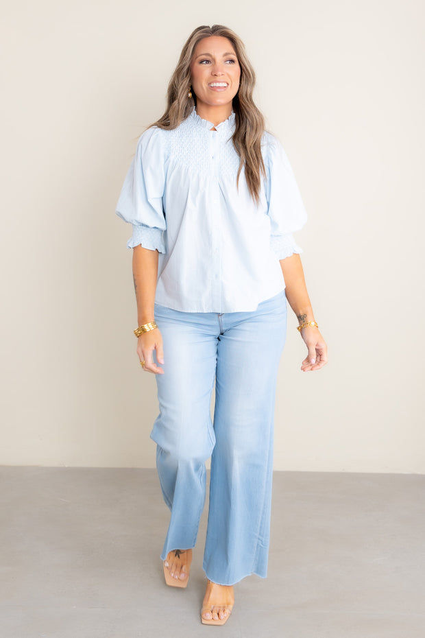 Indulge in effortless elegance with this Top. The delicate ruffle neckline and button down front exude sophistication, while the short sleeves and waist length add a touch of femininity.