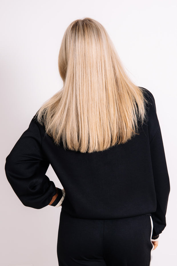 This Top features a flattering v-neckline and long sleeves for comfortable coverage. Its waist-length cut offers a relaxed fit perfect for everyday wear, combining style with ease.