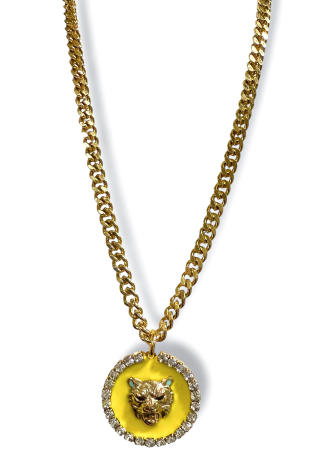 Show your wild side with the Fang Necklace! This stylish piece is crafted from high-quality crystals, antique gold plated brass, and hand-painted enamel. It's ~fang-tastic~ and made in Canada for extra bite! Wear as a show-stopping statement.