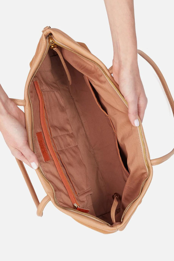 Tripp East-West has an exterior slip pocket, top zip closure and smooth leather panels to highlight the best leather quality.