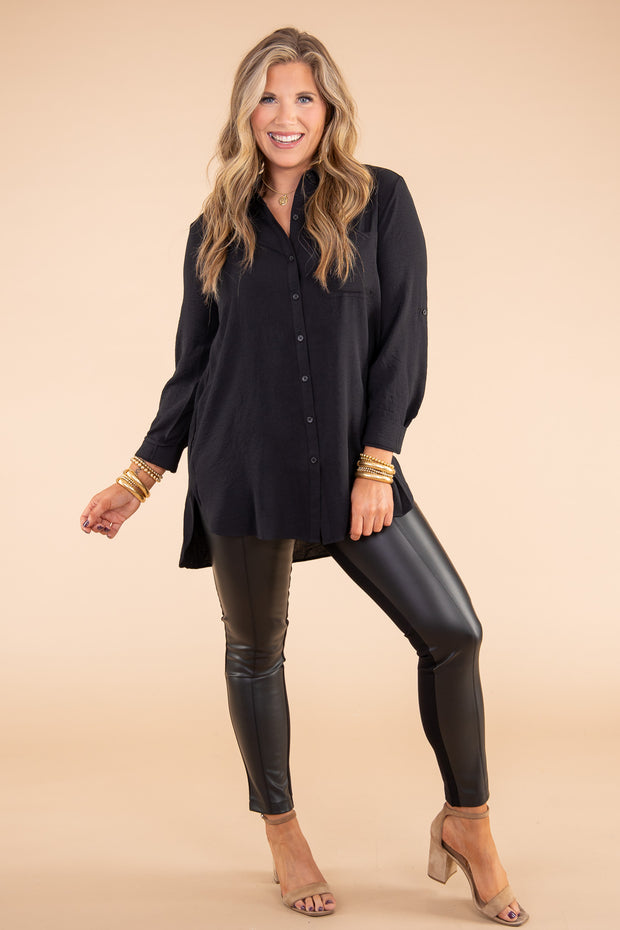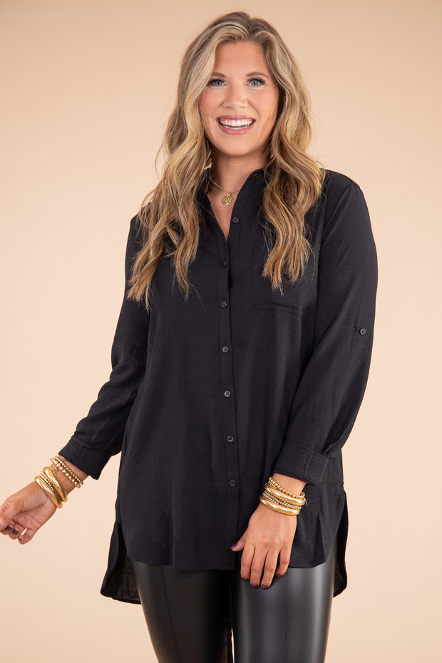 Stay stylish and comfortable with the Anything Goes Tunic! Crafted from the finest quality materials with a top collar, long sleeves, and button down front, this tunic is sure to become your go-to for any occasion. The front pocket adds an extra element of practicality, making it an indispensable addition to your wardrobe. With its versatility and timeless design, the Anything Goes Tunic will never go out of style.
