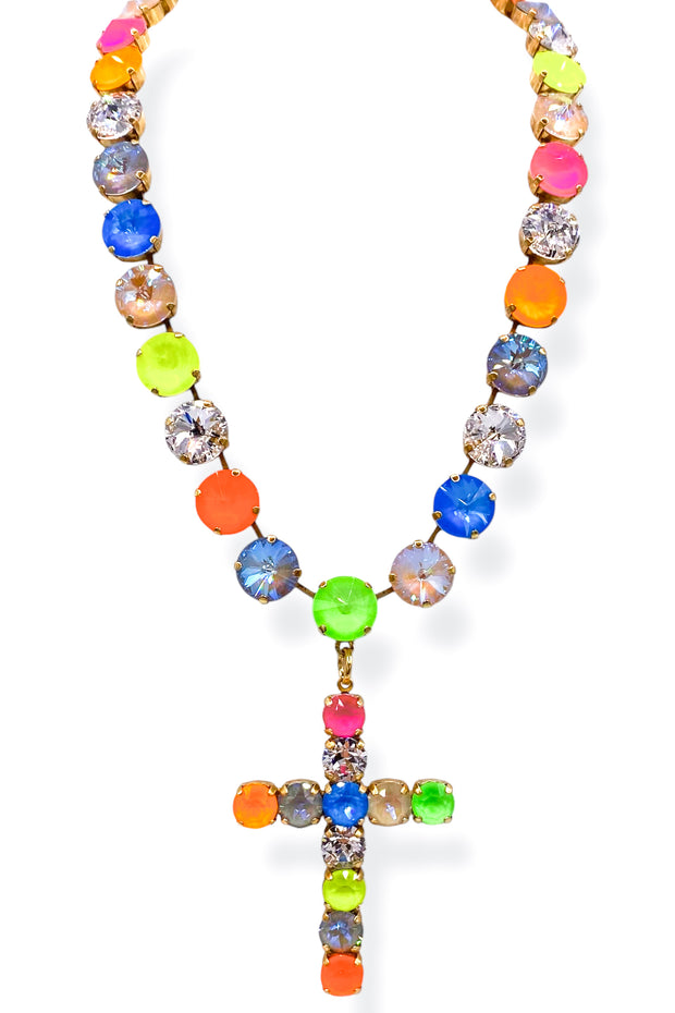 TOVA x TWT Donatella Neon Neutral Cross Necklace