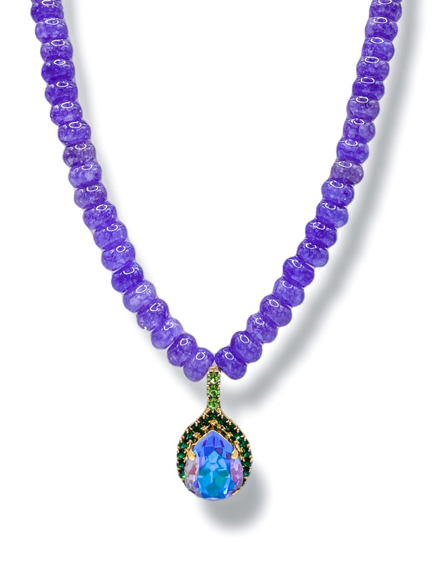 The TOVA Tyson Necklace features a beautiful stone bead necklace with a sparkling crystal drop. The delicate design adds elegance to any outfit, while the crystal adds a touch of glamour. Perfect for adding a touch of luxury to your wardrobe.