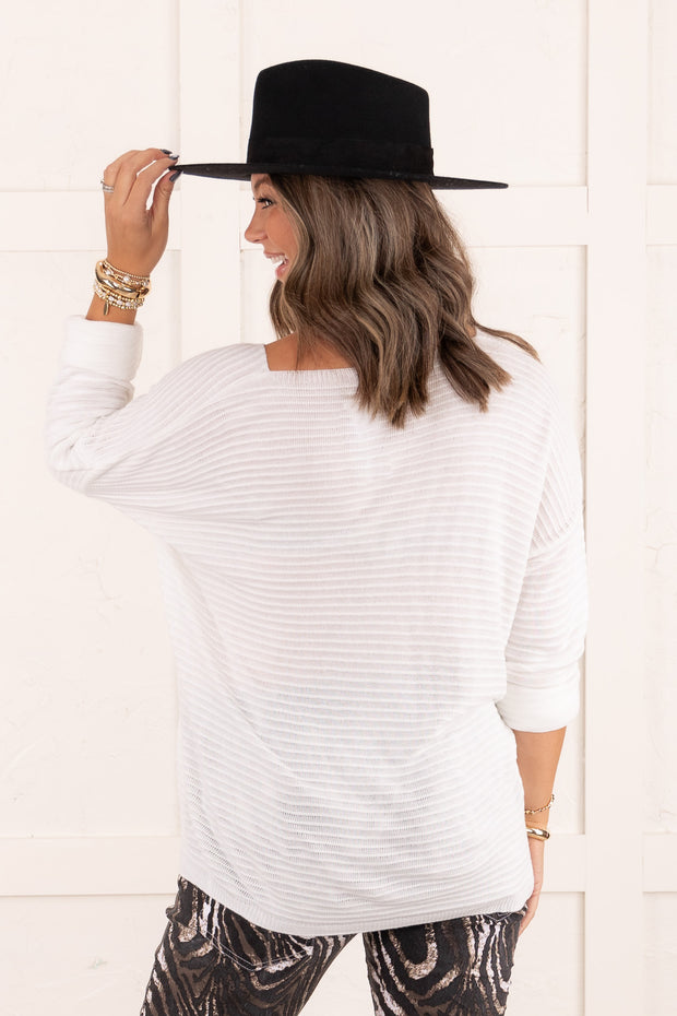 Expertly crafted with a v-neckline and ribbed material, the Going Home sweater offers both style and comfort. The classic white color and one size fit make it a versatile addition to any wardrobe. Stay warm and stylish all day long with the long sleeves of this must-have sweater.