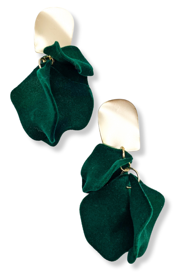 The Velvet Petal Earring is STUNNING. This is a gold earring with colored velvet petals. The petals on this earring will add the right amount of color to any look. Grab up both colors to have multiple options!