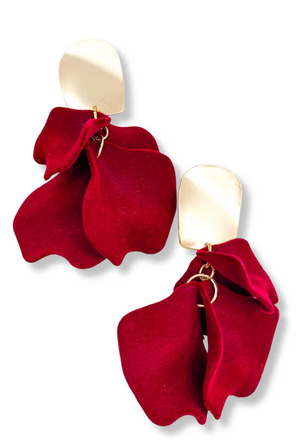 The Velvet Petal Earring is STUNNING. This is a gold earring with colored velvet petals. The petals on this earring will add  the right amount of color to any look. Grab up both colors to have multiple options!