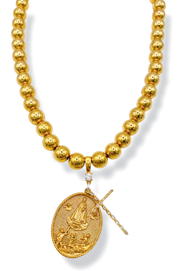 Rockstar In Rome Vintage Brass Beads Gold Plated Medal & Cross Necklace