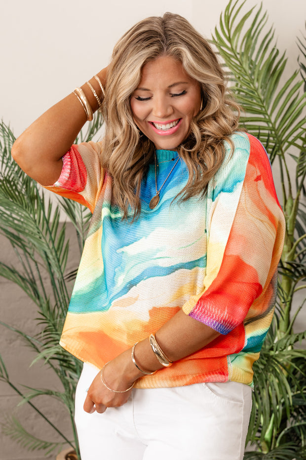 This Made To Shine Sweater features a rounded neckline and three-quarter length sleeves, making it both stylish and comfortable. The abstract print adds a unique touch to the light-weight, knitted material. Perfect for everyday wear or dressing up for special occasions.