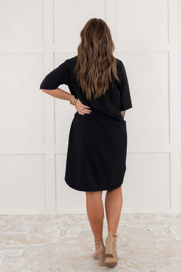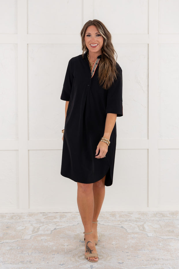 This Wendi Woven Tunic Dress features a button down bust, short sleeves, and striped detailing. With a top collar and side pockets, it combines style and convenience. The lightweight woven fabric offers comfort and breathability for all-day wear.