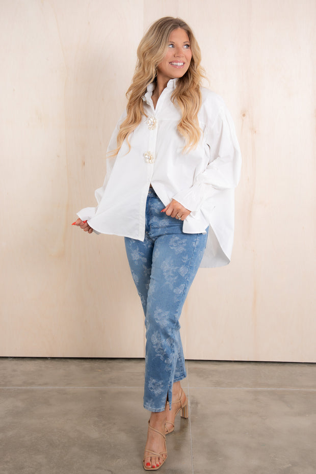 The top collar and long sleeves provide warmth and comfort, while the waist length and floral button down front add a touch of style. Made with high-quality materials for long-lasting wear.