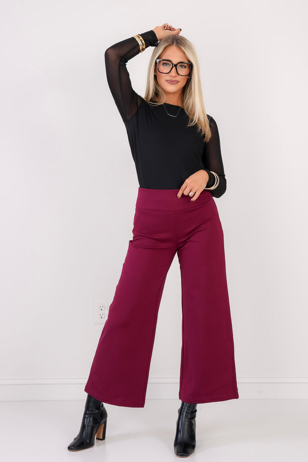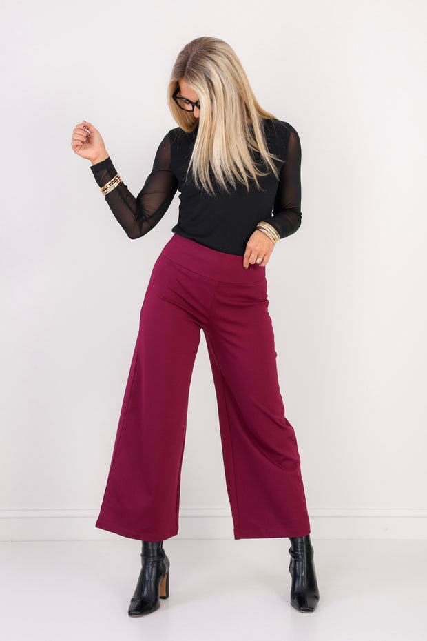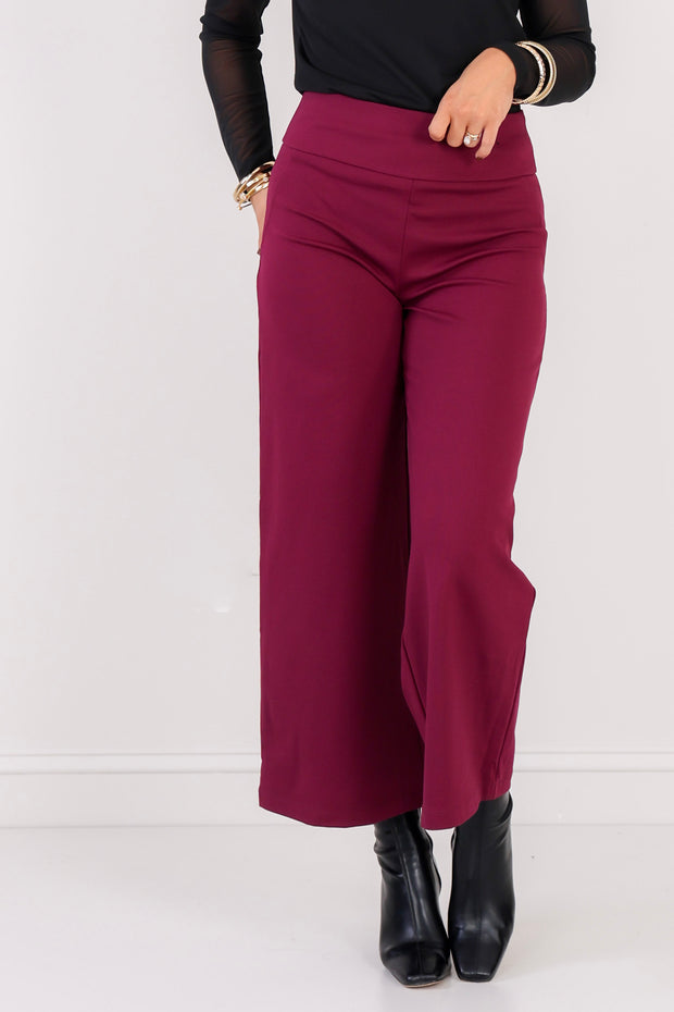 Indulge in the luxurious comfort and style of this Cropped Pant. Effortlessly chic with an elastic pull on waistband and stretchy material, its wide leg silhouette guarantees a flattering fit.
