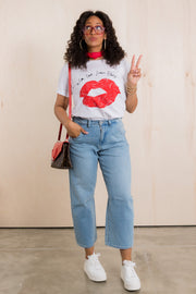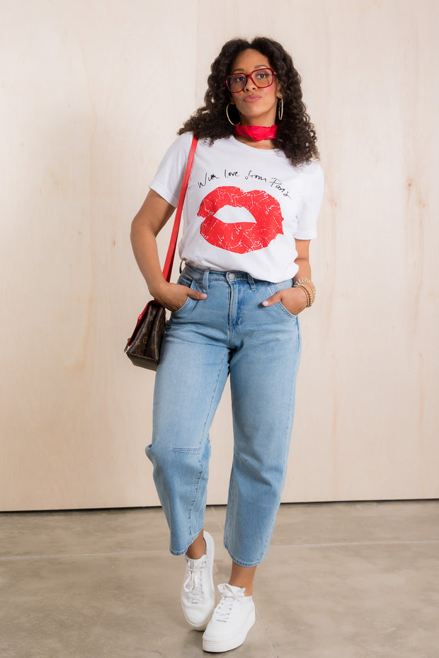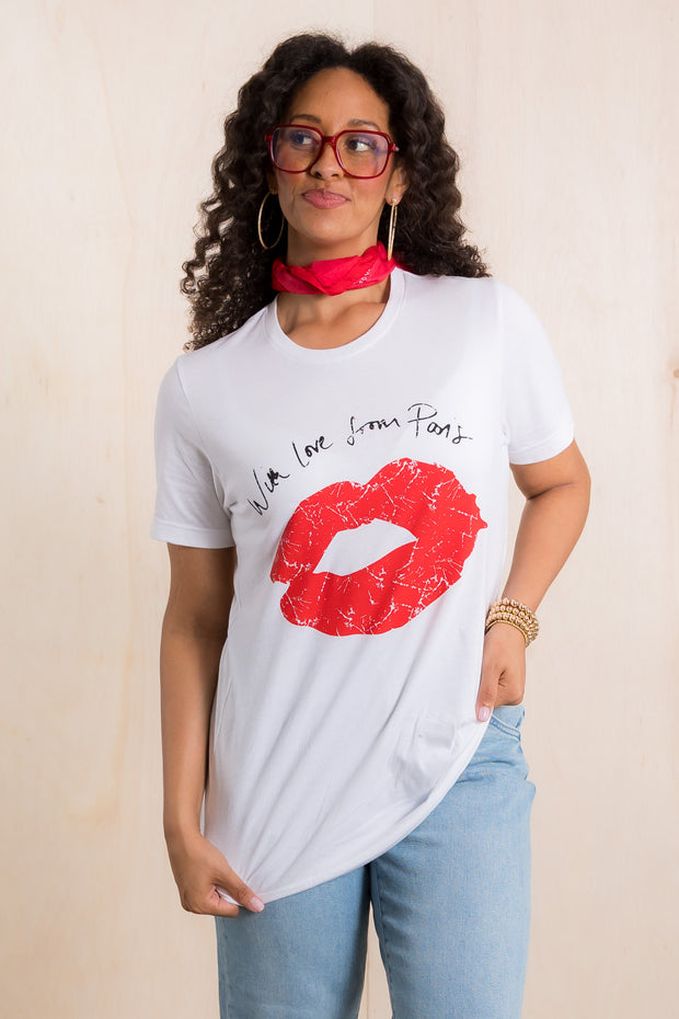 This Tee features a rounded neckline, short sleeves, and a waist length. Show your love for the city of love with the charming Paris graphic.