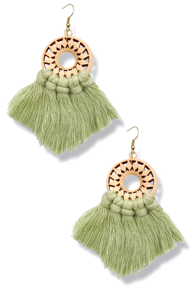 Looking Up Wood & Tassel Earrings *Final Sale*