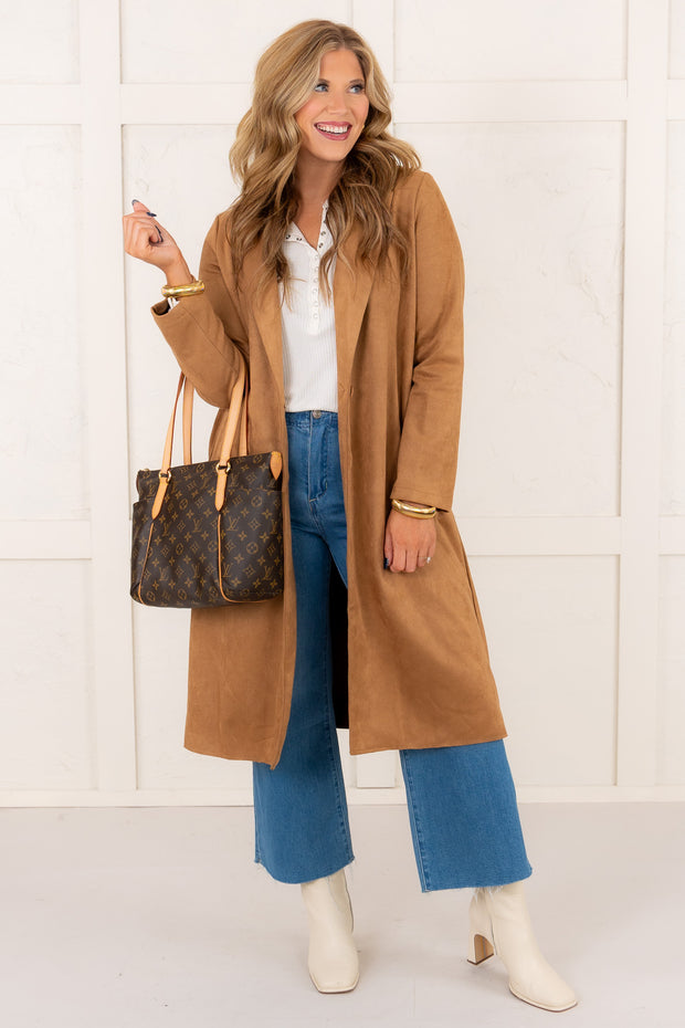 Introducing the Wherever You Go Woven Coat - a perfect addition to your wardrobe. With its v-neckline and long sleeves, this coat offers a comfortable and sleek fit. The button down front allows for easy on and off, while the suede material and silky inner lining provide both warmth and style. Elevate any outfit with this functional and fashionable coat.