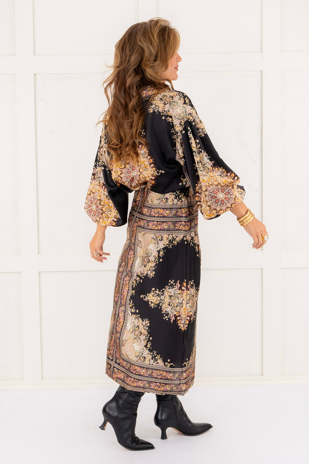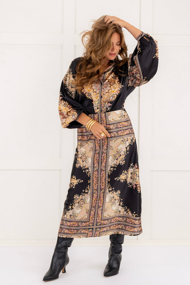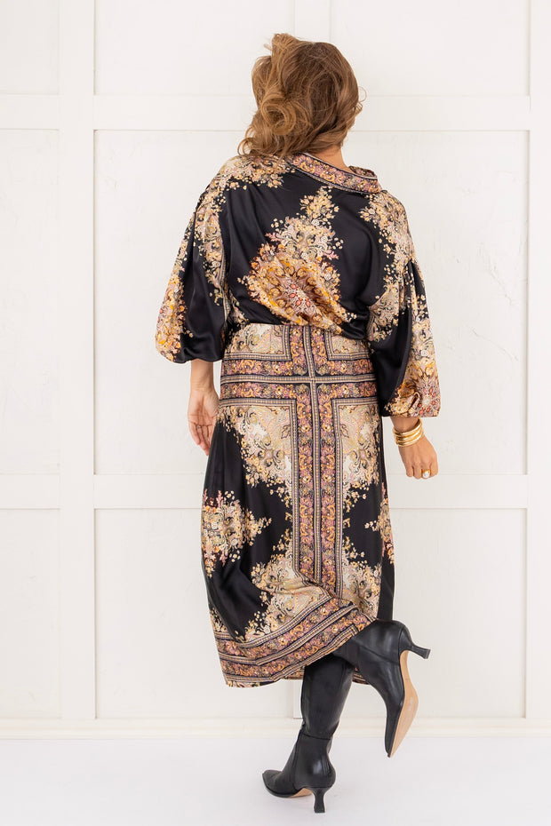 Expertly crafted in smooth satin material, the Bitter Sweet Blouse by Molly Bracken features a unique abstract print and classic top collar. With long sleeves for added coverage, this blouse offers both style and comfort in one versatile piece.