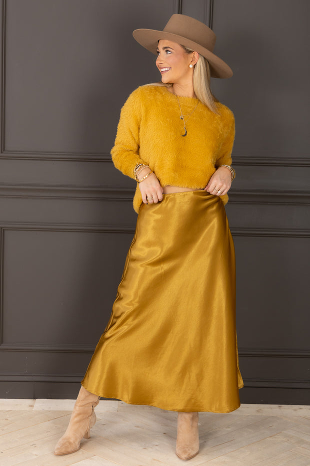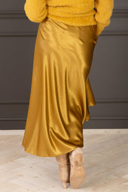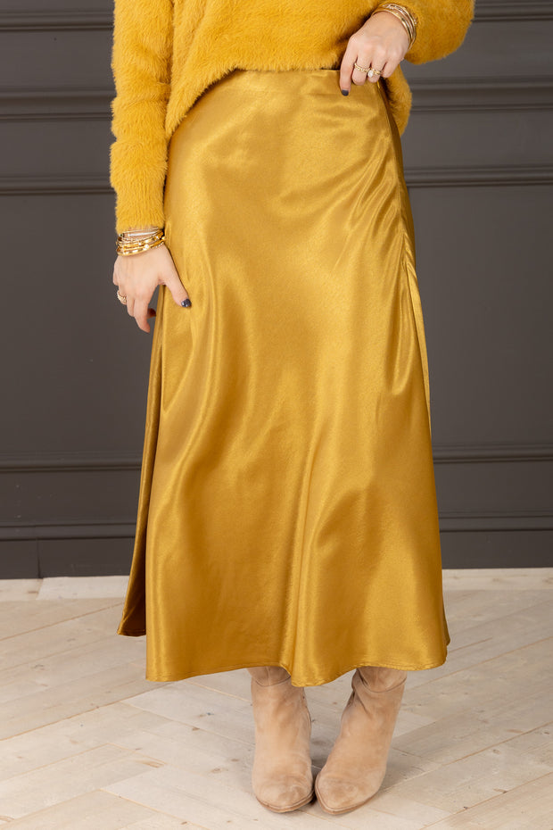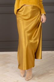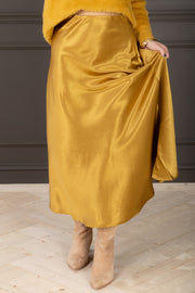 This Midi Skirt offers a smooth satin finish with a flattering midi length. It features an elastic pull-on waistband for comfortable wear and a convenient zip closure for a secure fit.