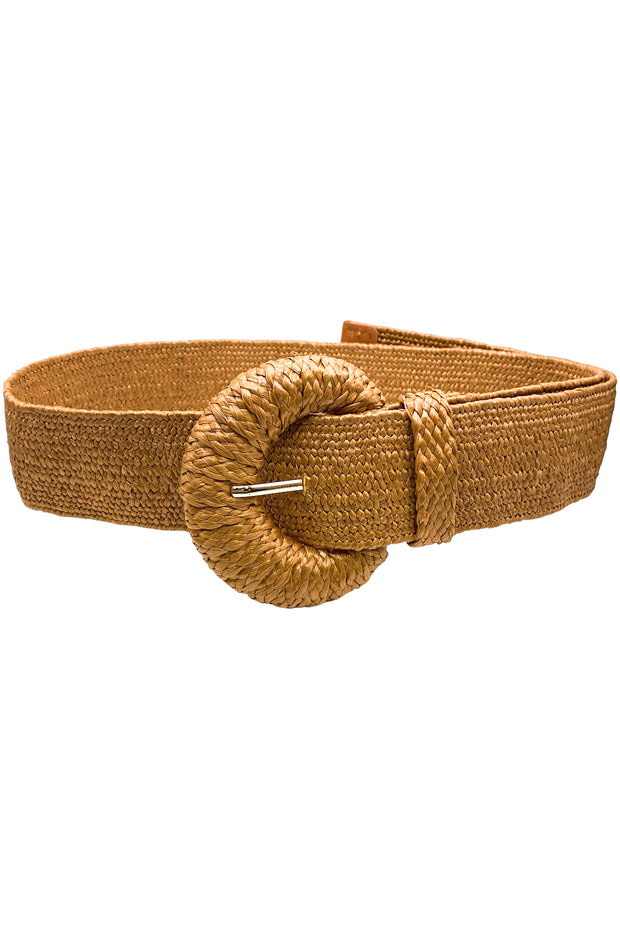 Add the perfect touch to your outfit with the In The Sand Belt. This straw belt features a unique half moon shaped buckle that adds a touch of elegance to any outfit. Made from high-quality materials, it's both stylish and durable. Elevate your look with the perfect accessory.
