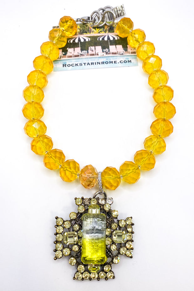 - Vintage Italian Yellow/Clear Tourmaline Crystal Cross