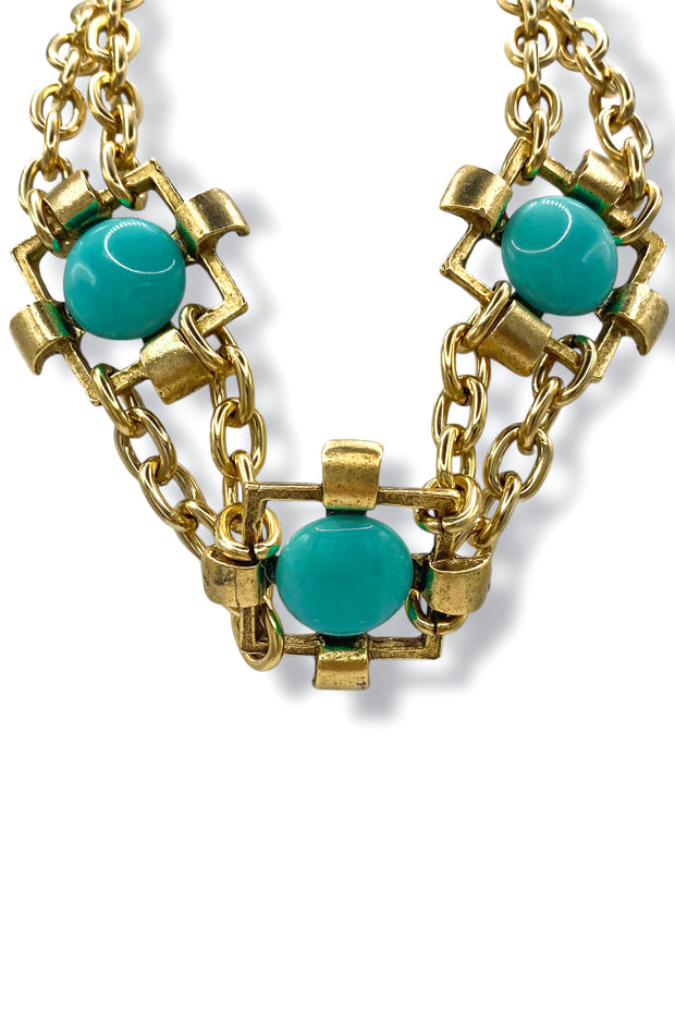 This double chain necklace boasts elegant gold square pendants adorned with delicate stone detailing. With its timeless design this necklace will bring a touch of something special to any outfit.