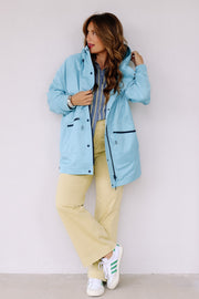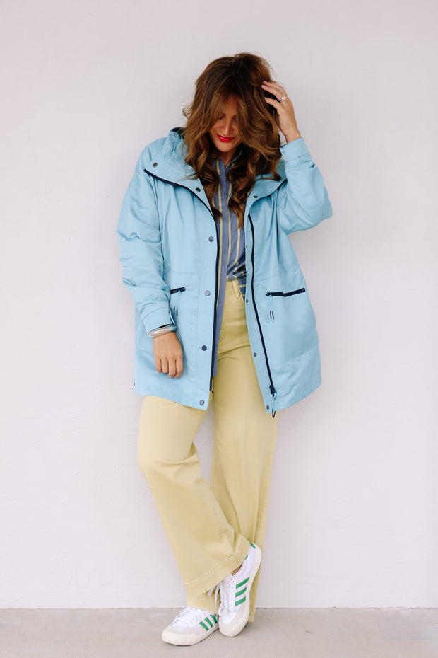 This Jacket features a hooded back and long sleeves for full coverage. Its waterproof fabric and zip-down front keep you dry, while the longer length offers extra protection. Functional back pockets and zipper compartment provide convenient storage for your essentials while you're on the go.